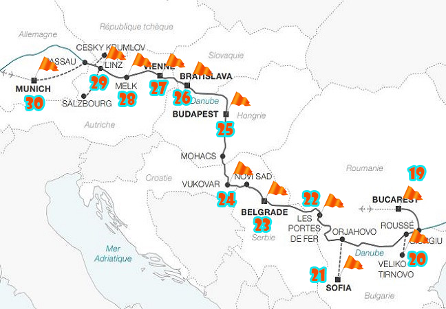 Une première dans nos voyages ! Nous allons tenter une croisière fluviale. Après avoir longuement consulté les circuits proposés par les différents armateurs, notre choix s'est finalement arrêté sur une remontée du Danube à bord de l'Amadeus Silver II affrêté par la compagnie Rivages du Monde.