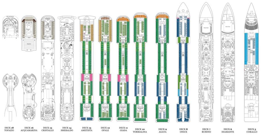 Nombre de Cabines : 1788 Capacité maximale de Passagers : 4345 Nombre de Membres de l’équipage : 1388