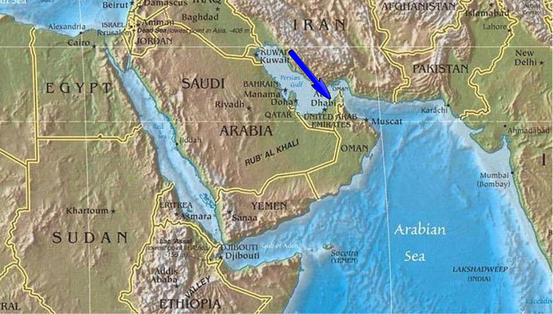 l'est). L'émirat possède aussi l'enclave de Hatta dans les montagnes